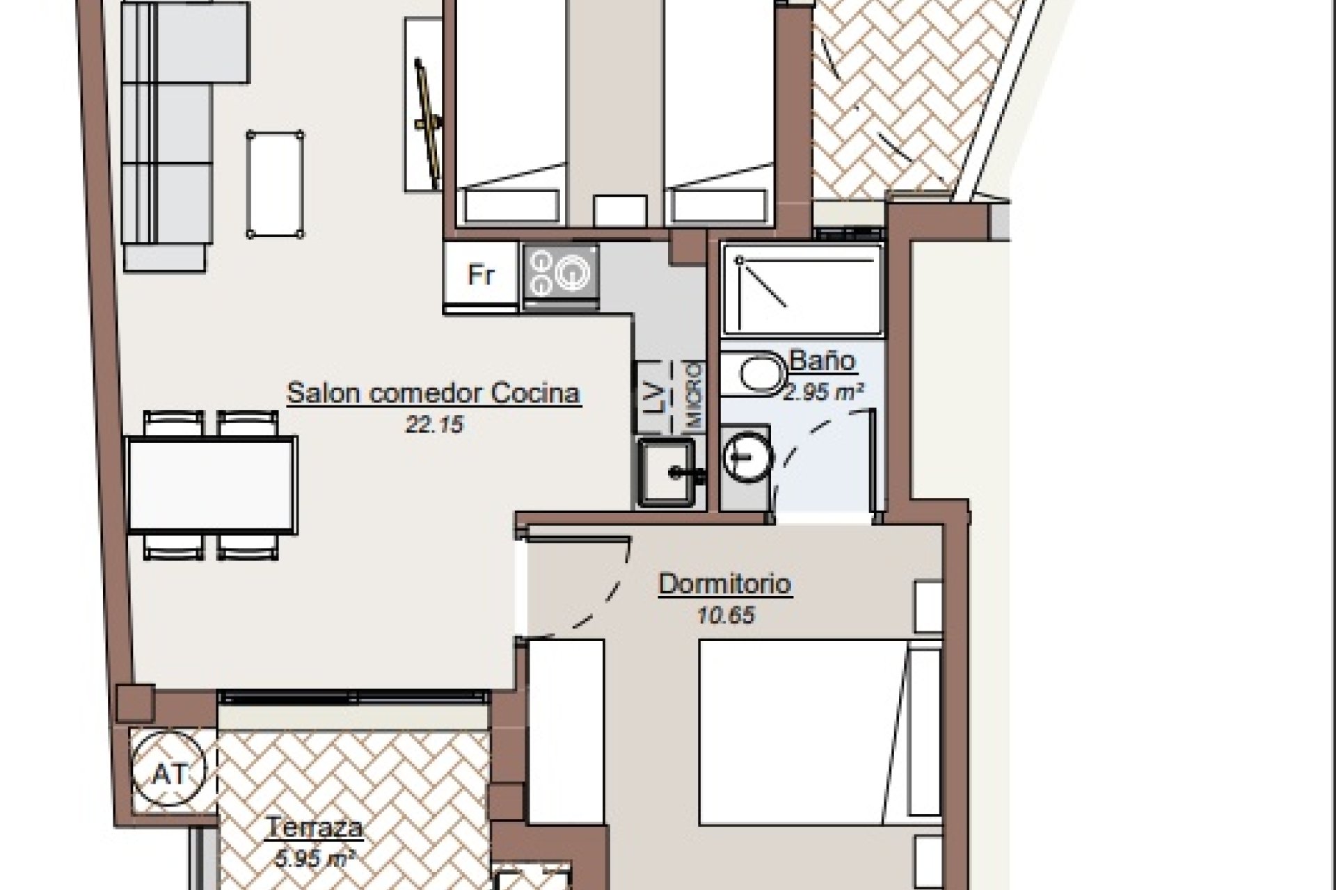 The interiors of the apartments and penthouses are equipped with modern features that ensure a comfortable living experience. Ceramic floors add an elegant touch and are easy to maintain. Security and comfort are assured with a video intercom and electric shutters. The kitchens are fully equipped with appliances, and built-in wardrobes offer efficient storage. Additionally, the pre-installation of air conditioning allows easy adaptation to each resident's climate preferences. With two bedrooms and two bathrooms, these properties are designed to meet the needs of modern and functional living.
