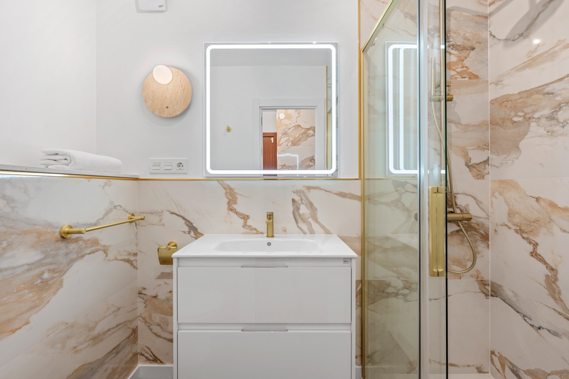 Designer furnitureNatural stone elementsLarge-format porcelain tilesIntegrated ambient LED lightingInverter air conditioning with Wi-Fi controlInduction hobDishwasherDirect Drive washing machineQLED Smart TVAlarm systemProgrammable boiler