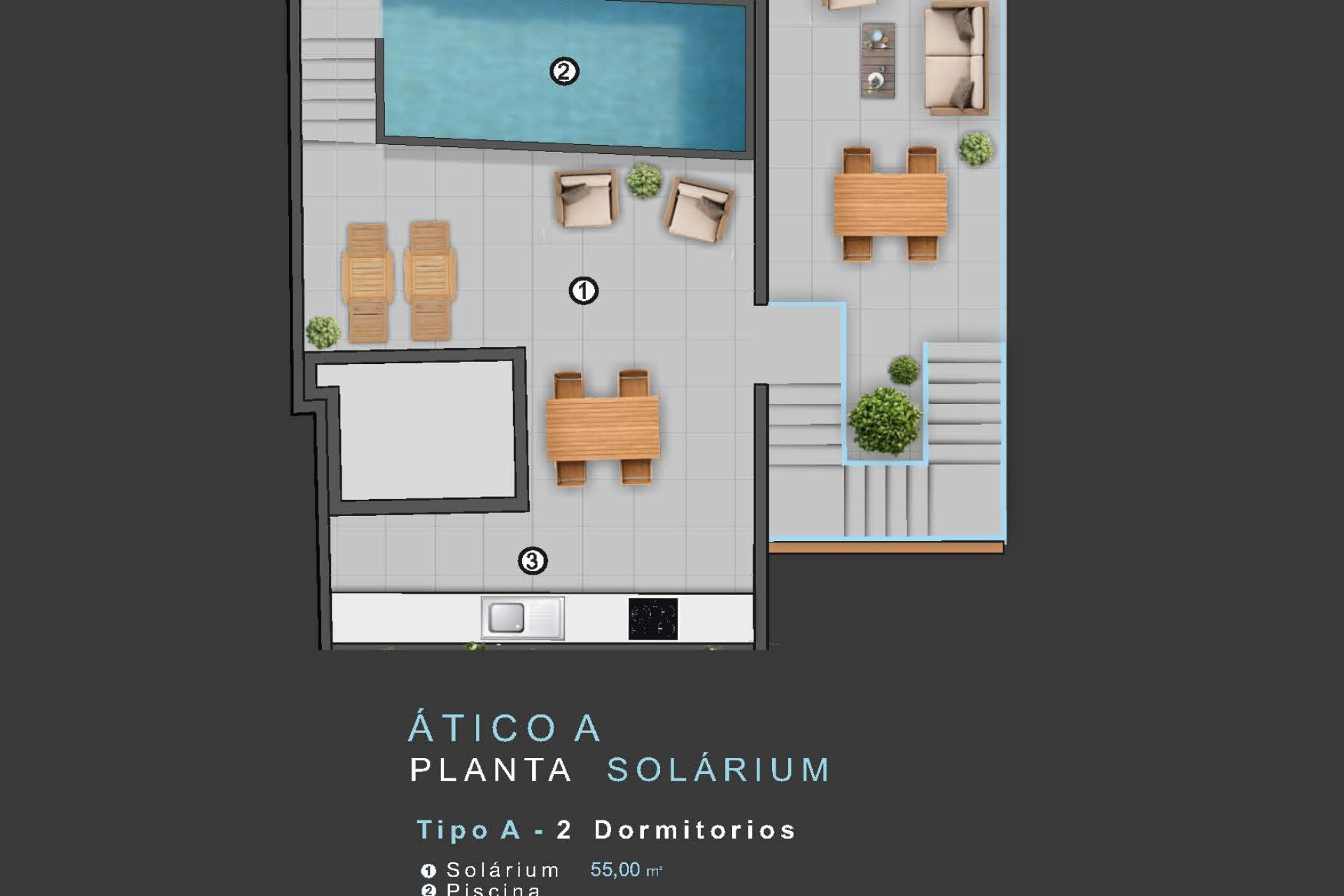 With modern interiors designed to offer maximum comfort, these homes stand out for their porcelain stoneware floors that combine elegance and durability. The pre-installation of air conditioning ensures personalized climate control year-round. Built-in wardrobes optimize interior space while the video intercom adds extra security. Options include flexible layouts with 1, 2, or up to 3 bedrooms and up to 2 bathrooms. The penthouses feature a private solarium to enjoy the sun and panoramic views.