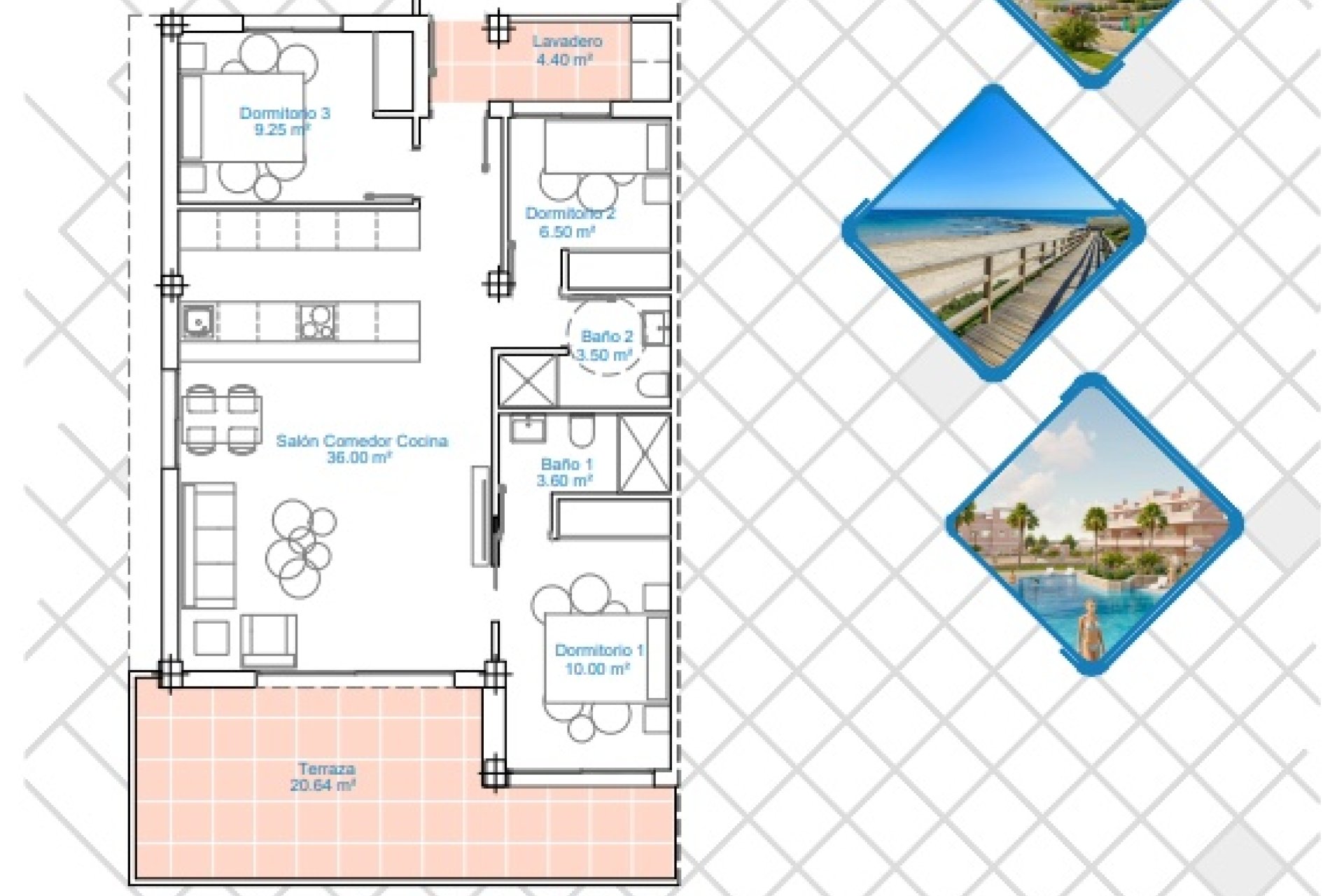 The homes are designed with modern comfort and daily practicality in mind. With three well-distributed bedrooms and two full bathrooms, these properties offer ample space for diverse families. The elegant porcelain stoneware floors facilitate maintenance, while the electric blinds add extra modernity. The kitchen, equipped with appliances, allows for a worry-free move-in from day one, complemented by an air conditioning system that maintains the ideal temperature year-round. The built-in wardrobes optimize the available space, providing practical storage solutions.