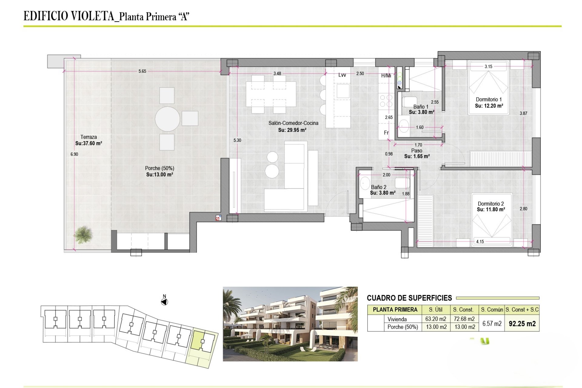 Alicante Spain Properties presents an exclusive residential complex in Los Guardianes, consisting of 14 homes that include apartments, ground floors, bungalows with gardens, and penthouses. Ideal for those seeking modern comfort and functionality, these properties offer top-quality appliances, built-in wardrobes, and pre-installation of air conditioning. Just 41.3 km from the airport, the location combines tranquility with accessibility to services. With options of 2 or 3 bedrooms and 2 bathrooms, each home is designed to meet various family needs.