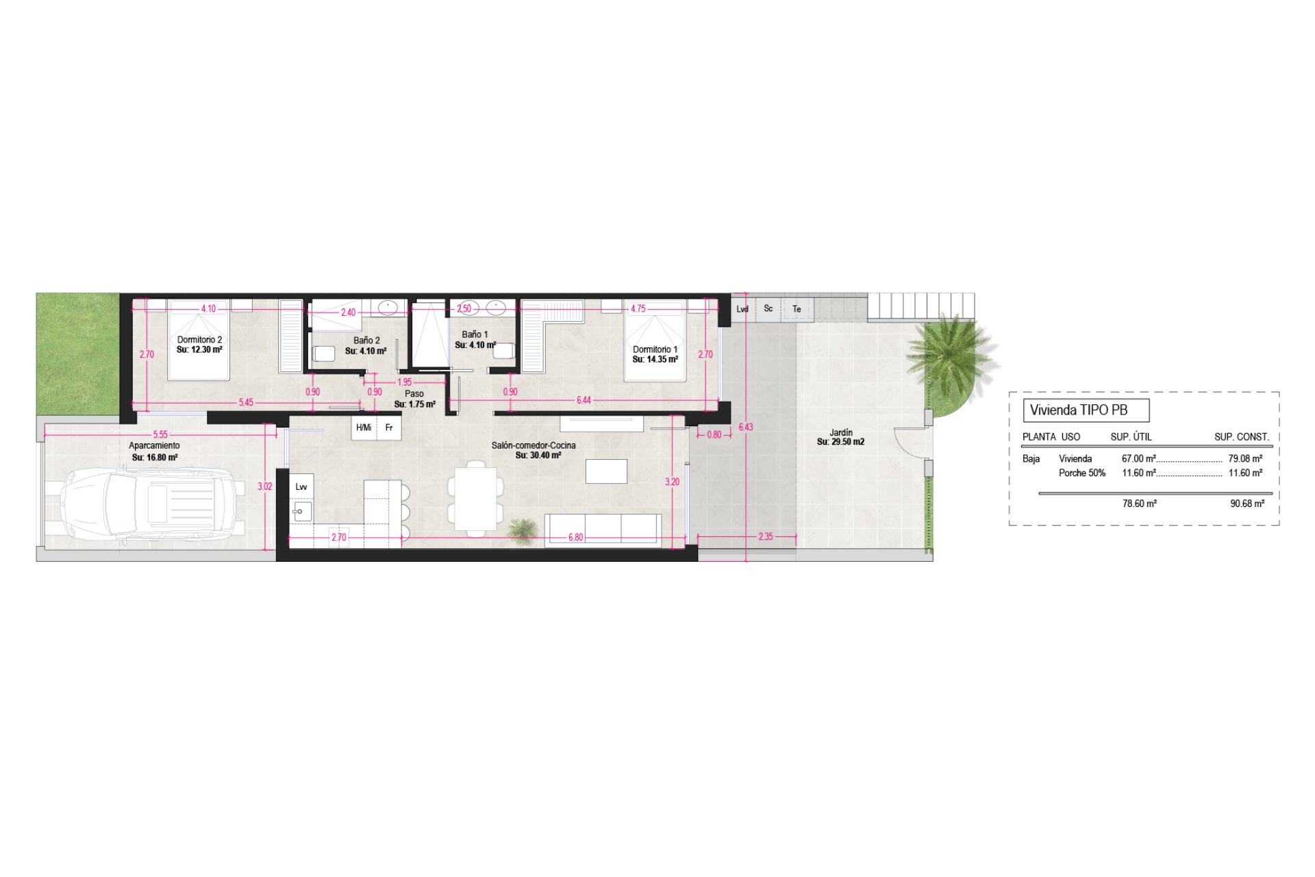 The interior of each bungalow has been meticulously designed to offer comfort and practicality. With two bedrooms and two well-distributed bathrooms, each space guarantees privacy and comfort. The bedrooms include built-in wardrobes that optimize storage while the pre-installation of air conditioning ensures a pleasant temperature year-round. The kitchen is equipped with modern appliances that facilitate daily tasks, making these bungalows an excellent option for those looking to buy a new home ready to move in.