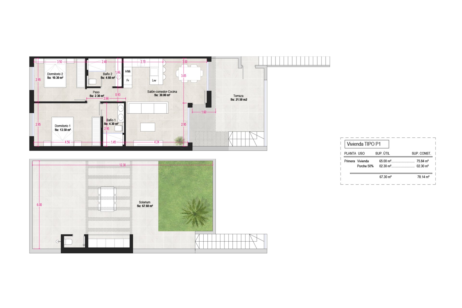 The exteriors of these bungalows in Los Guardianes are designed to make the most of the Mediterranean climate. Each home features its own private garden, ideal for creating a personal retreat. The terraces are perfect for enjoying outdoor dinners or relaxing under the stars. Additionally, the bungalows come with a solarium that offers stunning panoramic views of the surroundings. The garage provides added security and convenience when parking your vehicle.